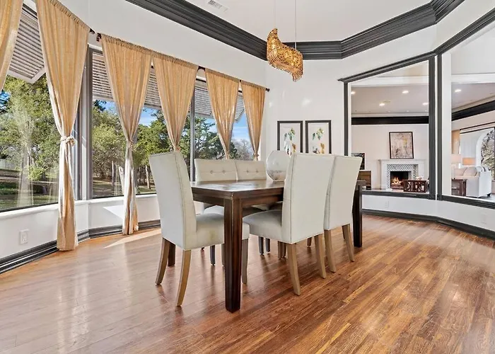 Situated just 30 km from Dallas Love Field Airport, the exquisite Dallas Estate! Welcomes guests to an oasis of tranquility and luxury. Designed to offer the ultimate in relaxation, this holiday home presents an idyllic retreat, surrounded by a verdant garden and boasting a stunning private pool that invites leisure and rejuvenation.